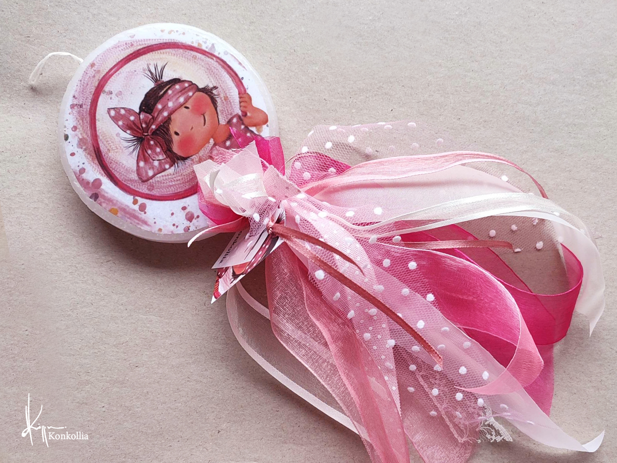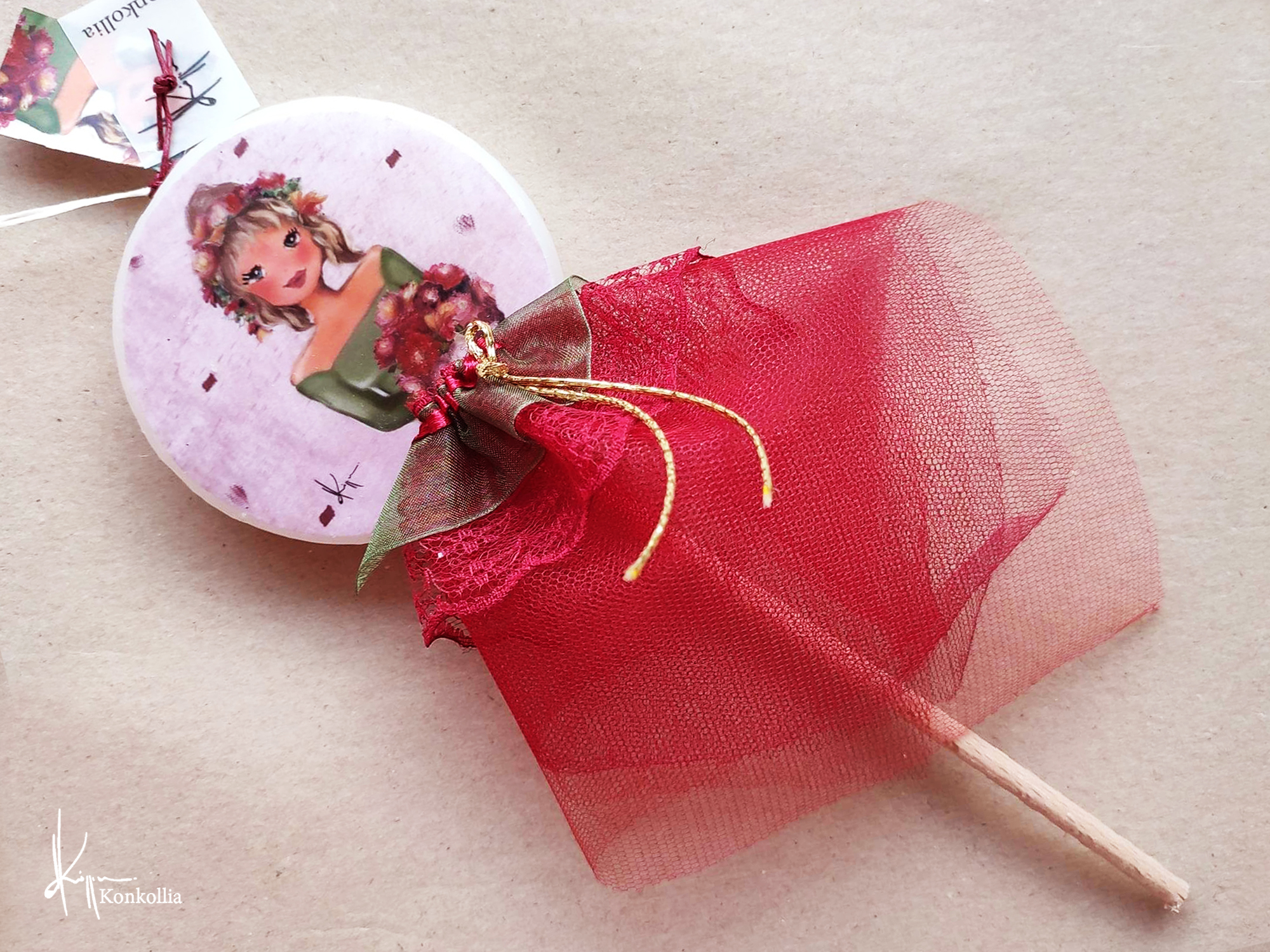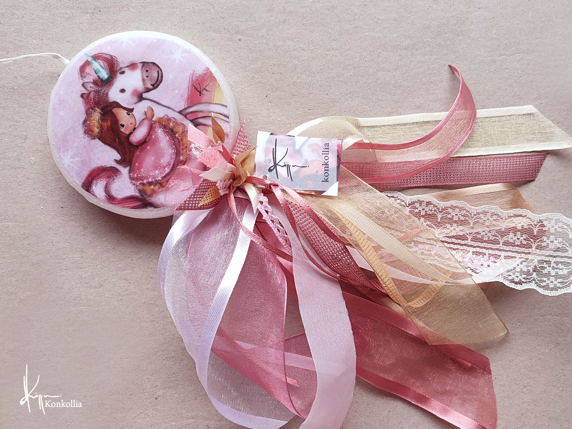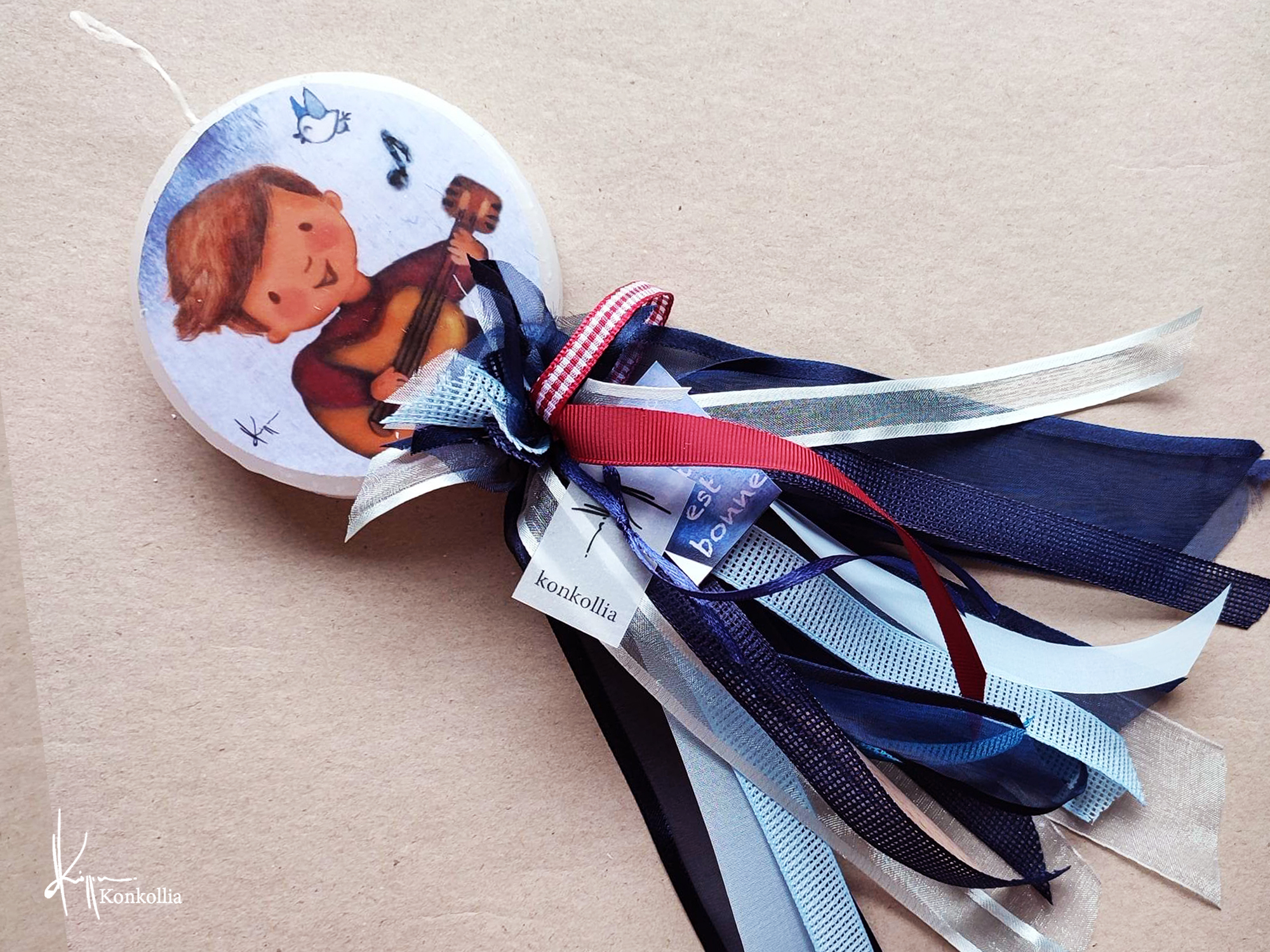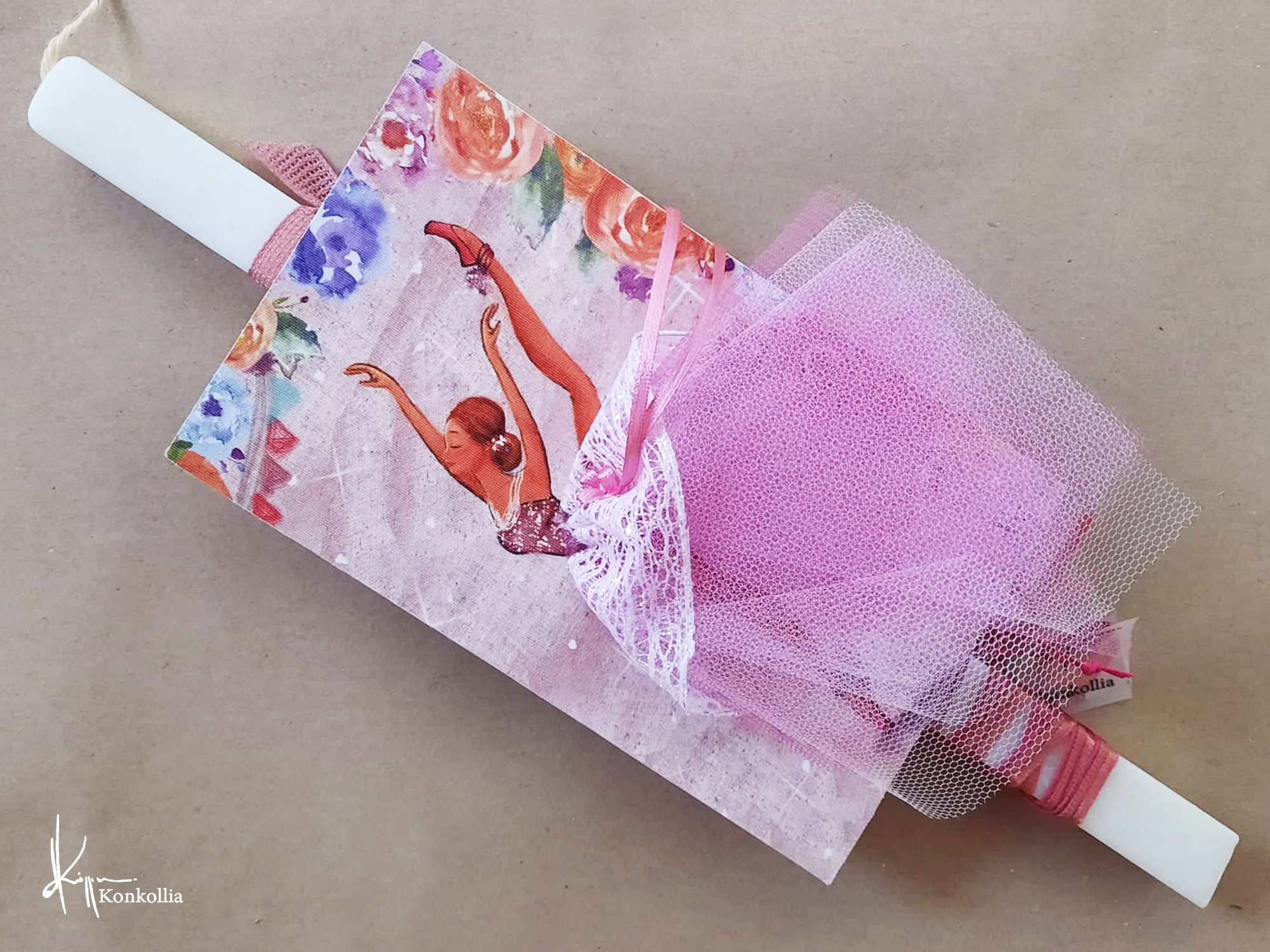 Χειροποίητες πασχαλινές λαμπάδες, κατασκευασμένες με πολύ καλή ποιότητα πρώτης ύλης (παραφίνη). Τα σχέδια τα οποία απεικονίζονται είναι δημιουργίες ζωγραφικής σε ακουαρέλα ή άλλης τεχνικής της Κωνσταντίνας Κόλλια τα οποία ενσωματώνονται μέσα στο κερί. Η συγκεκριμένη τεχνική που έχει επιλέξει η δημιουργός έχει σαν αποτέλεσμα την ευκρίνεια των λεπτομερειών και την καθαρότητα των χρωμάτων των σχεδίων.