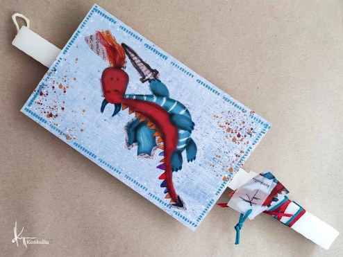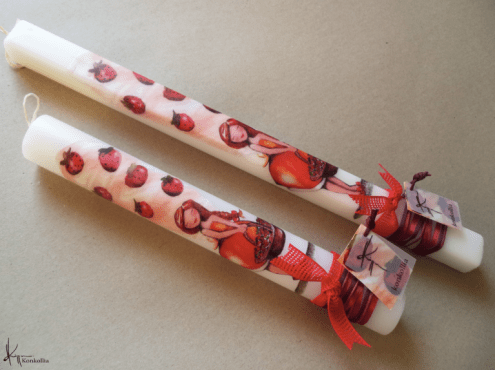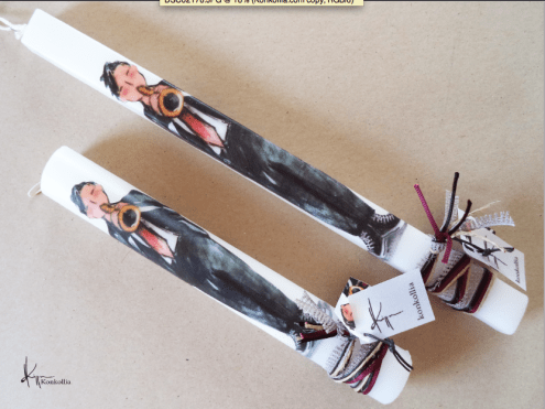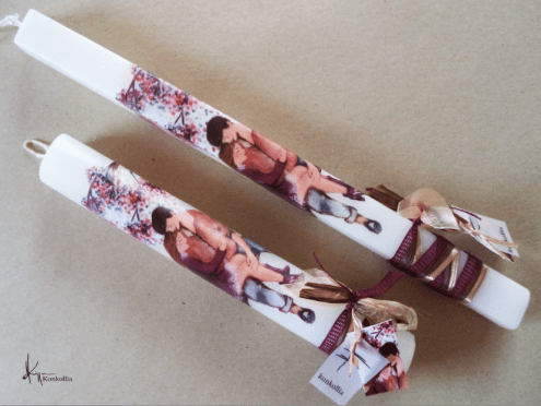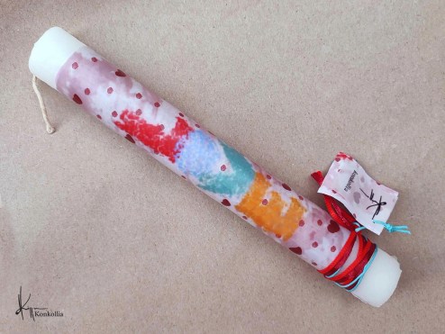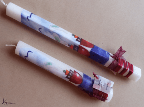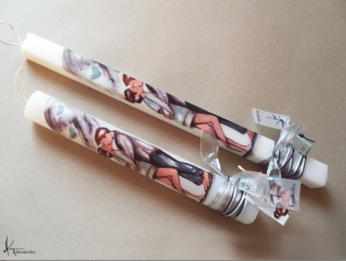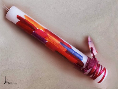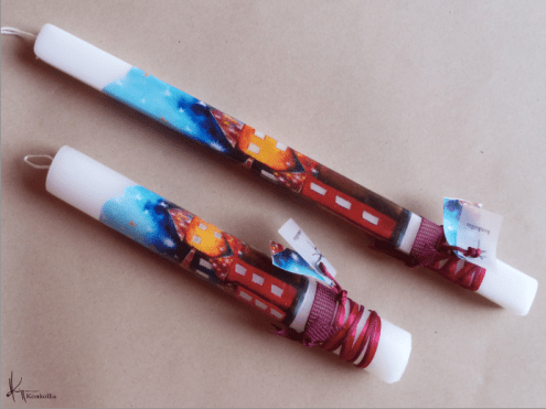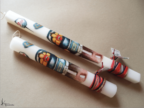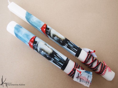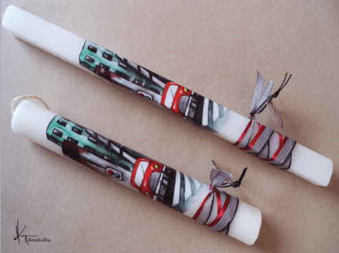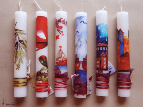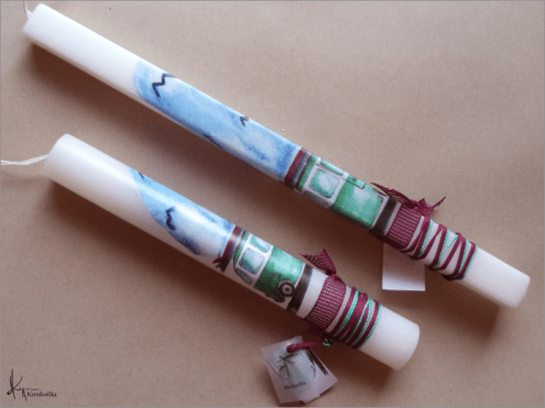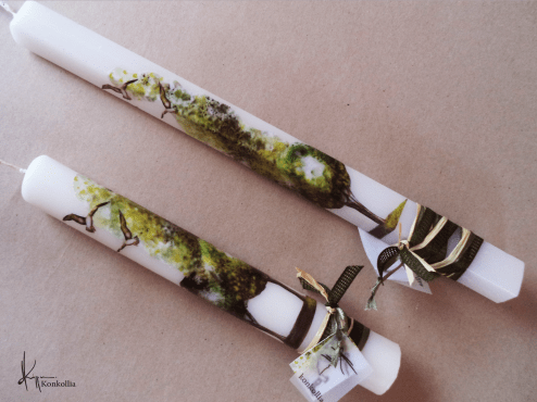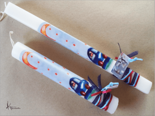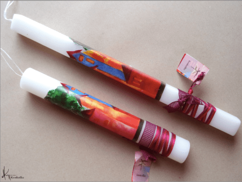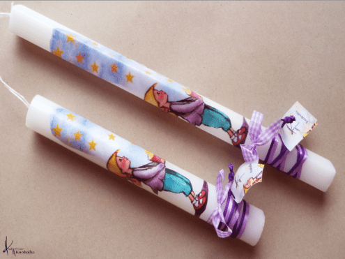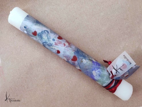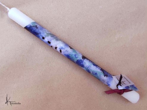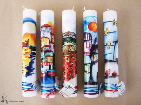 Handmade Easter candles, malted with top quality raw material (paraffin). The works that are shown on the candles are watercolor paintings or other technique creations by Konstantina Kollia, molded within the candle. The creator’s choice of this specific technique has the result of the sharpness of the details as well as the clarity of the colors in her works.