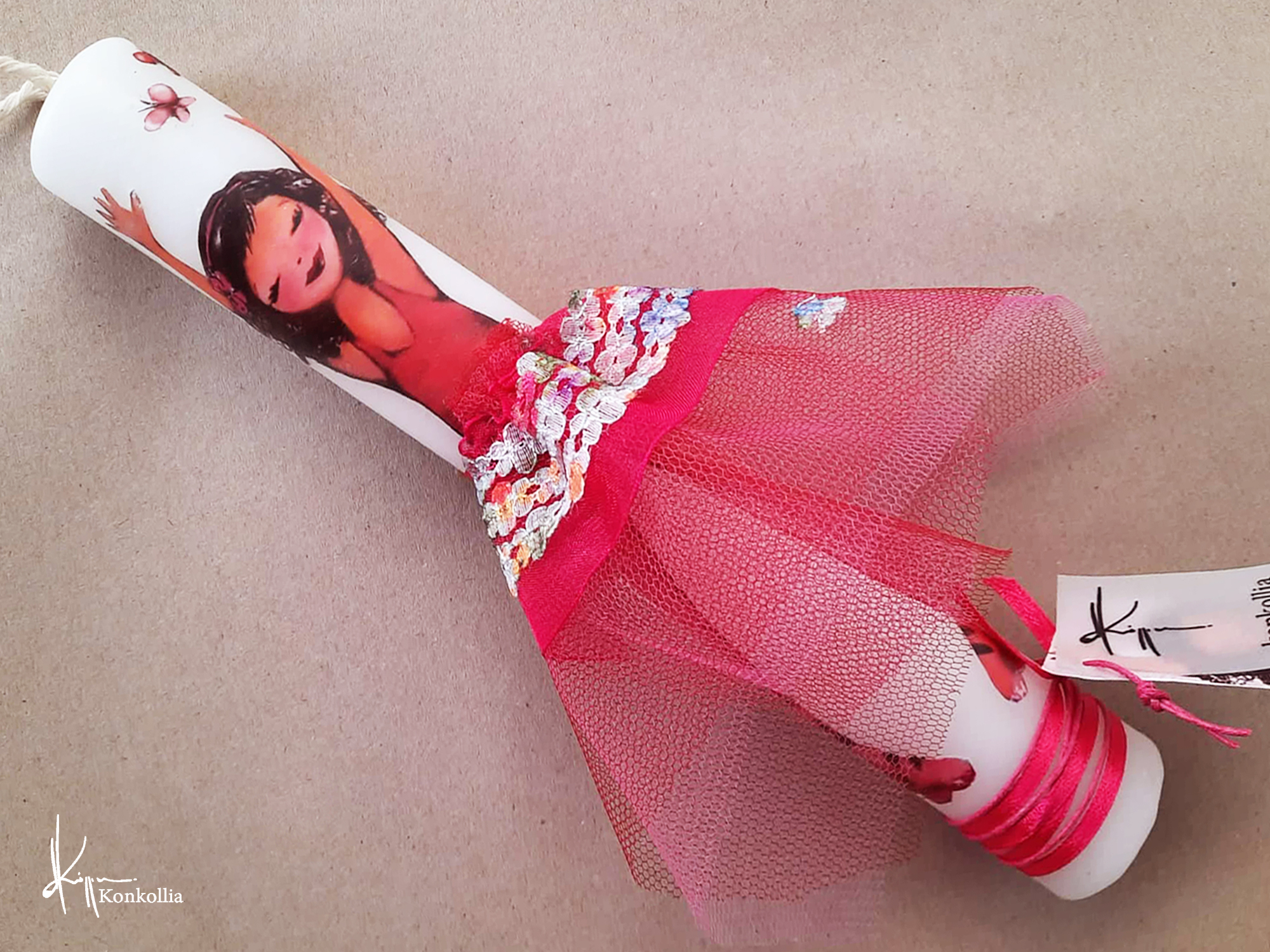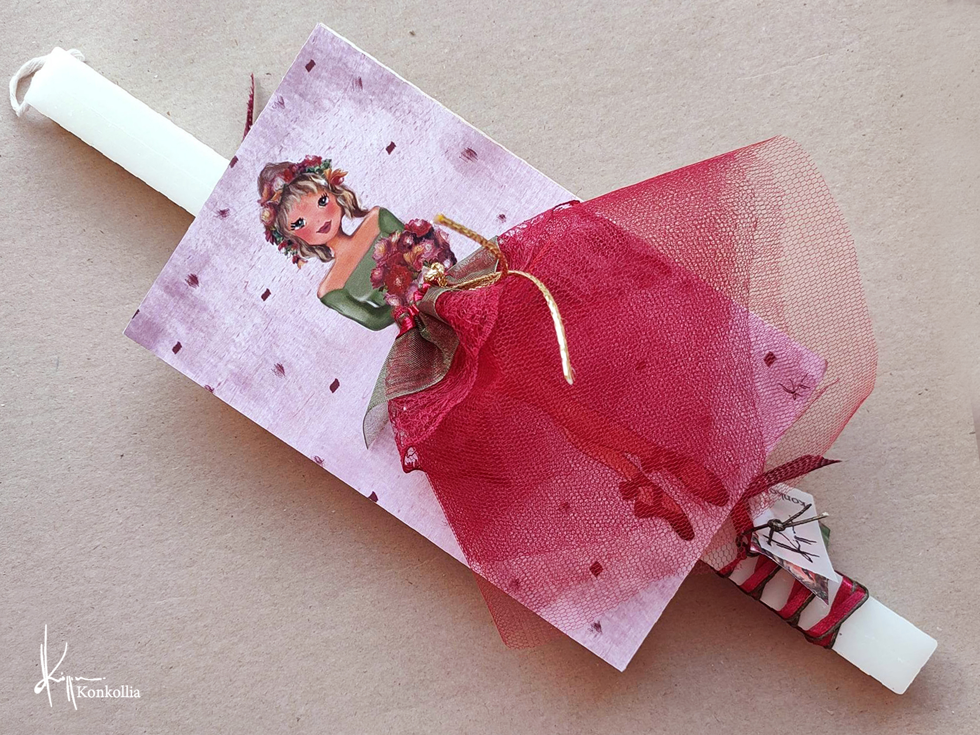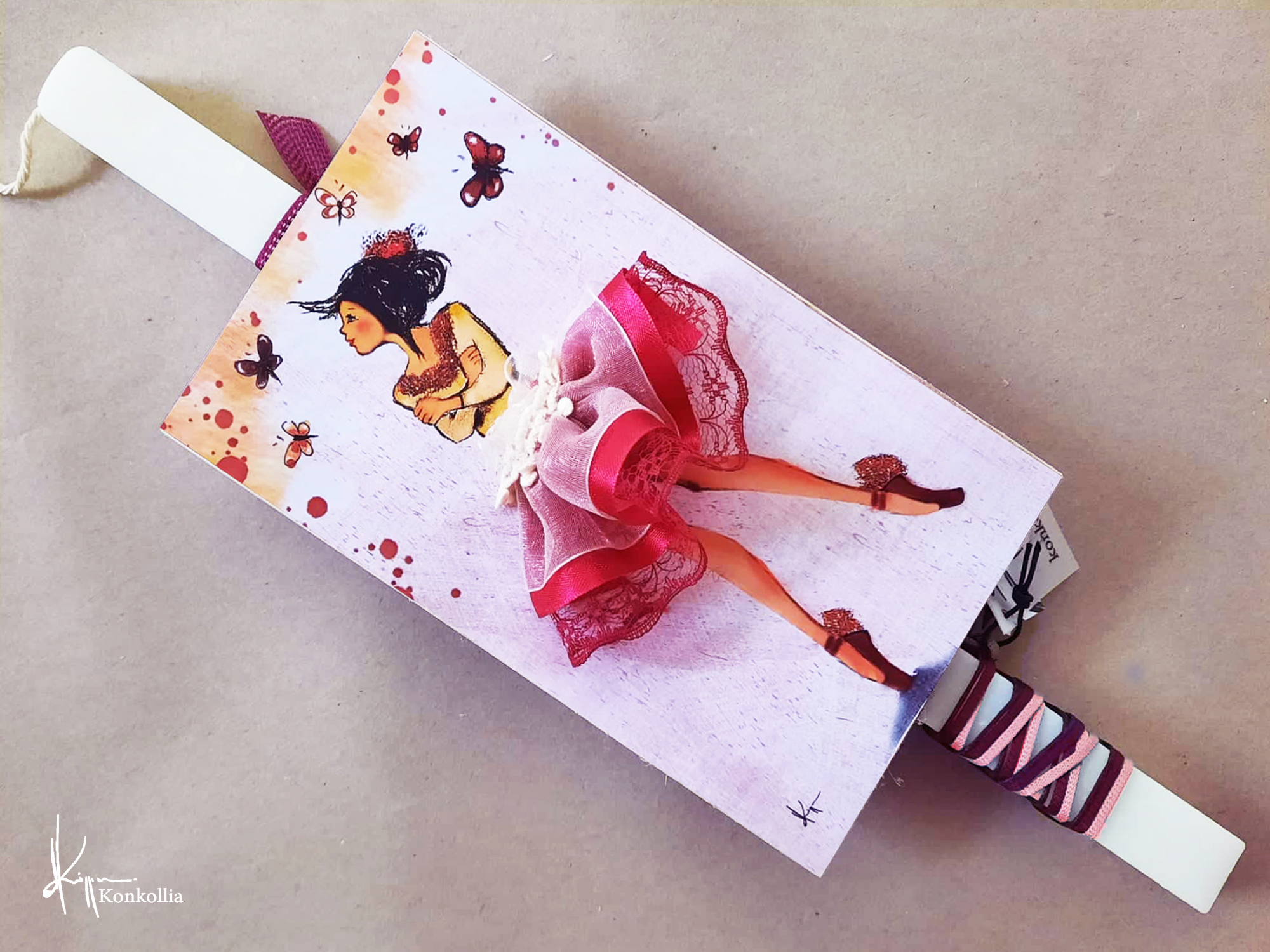 • Λαμπάδες ξύλινο κάδρο με ”ζωντανές” χρωματιστές φούστες