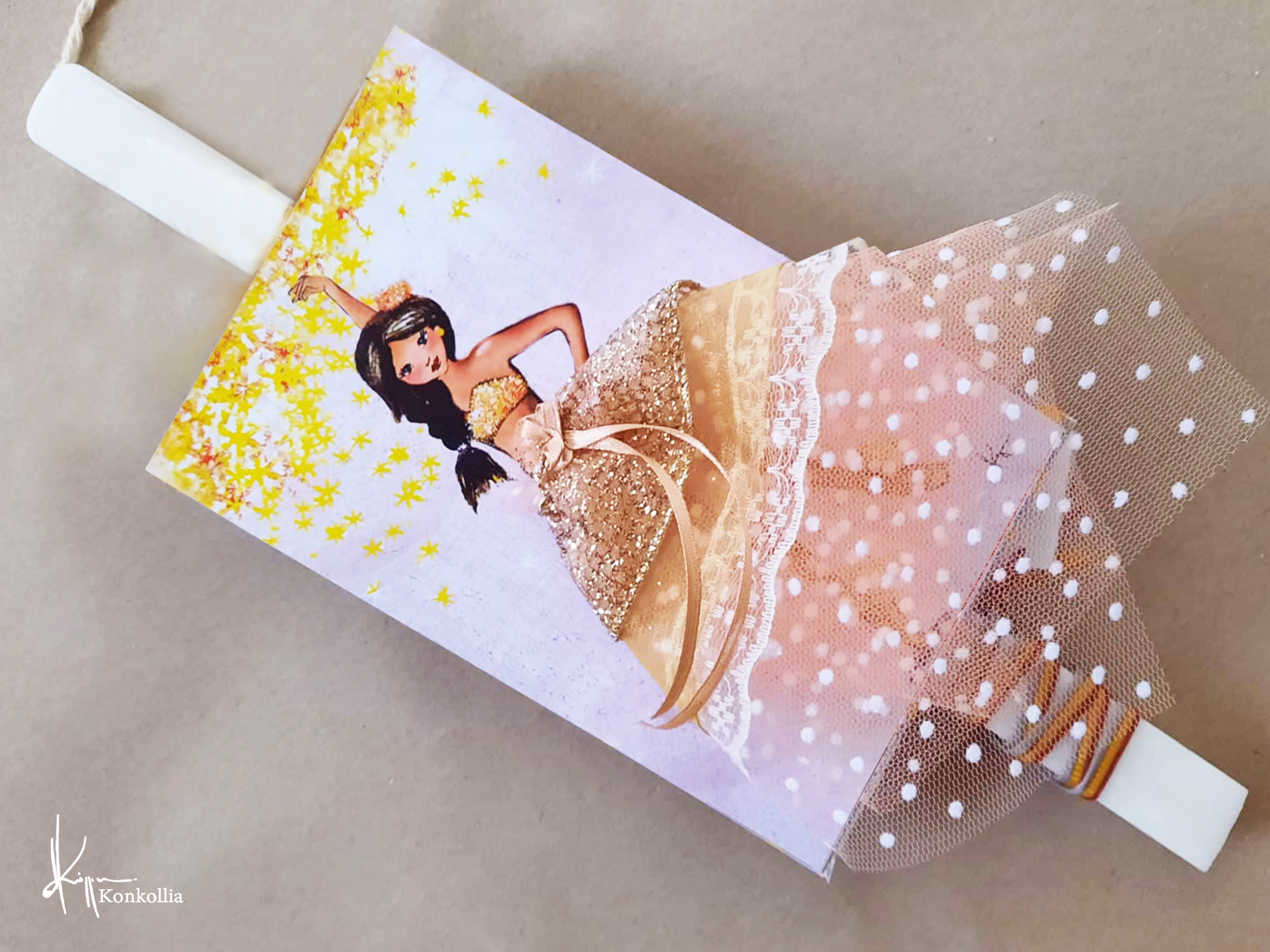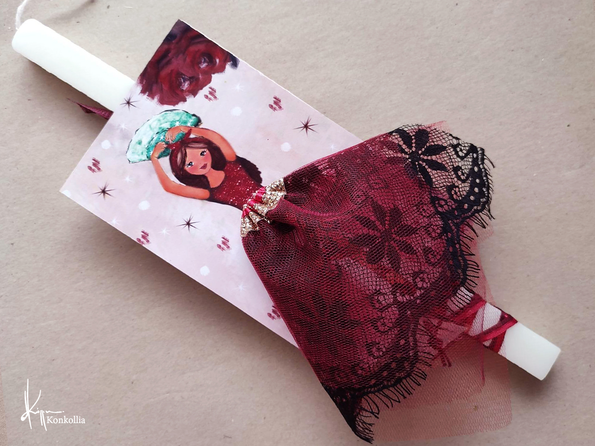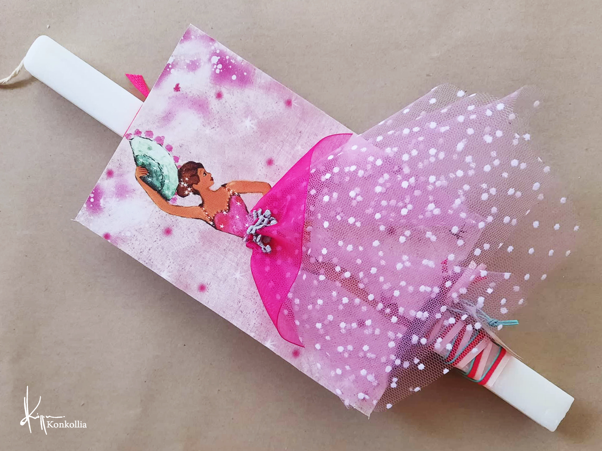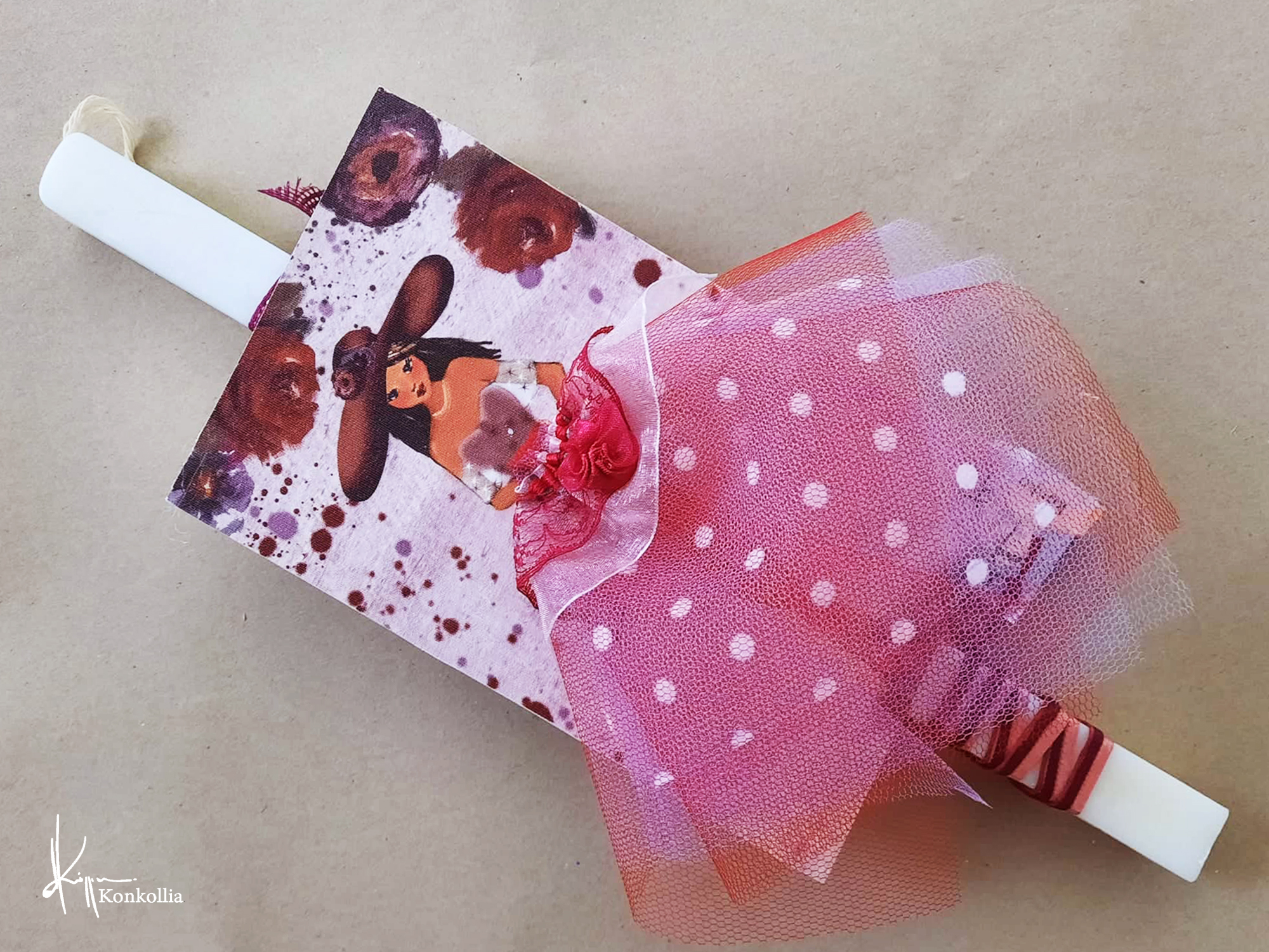 • Λαμπάδες ξύλινο κάδρο με ”ζωντανές” χρωματιστές φούστες