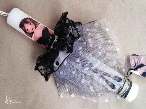 • Λαμπάδες με ”ζωντανές” χρωματιστές φούστες / Διάσταση κεριού 2,8 x 25 εκ.