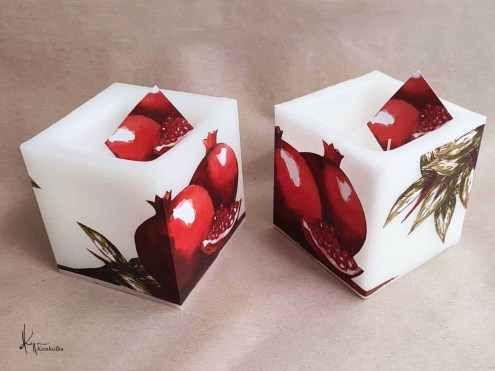 The creation of this candles is based on an innovative technique, known as «Painting with wax». This technique is based on creating designs entirely made of wax, without adding any artificial color in the molding process.