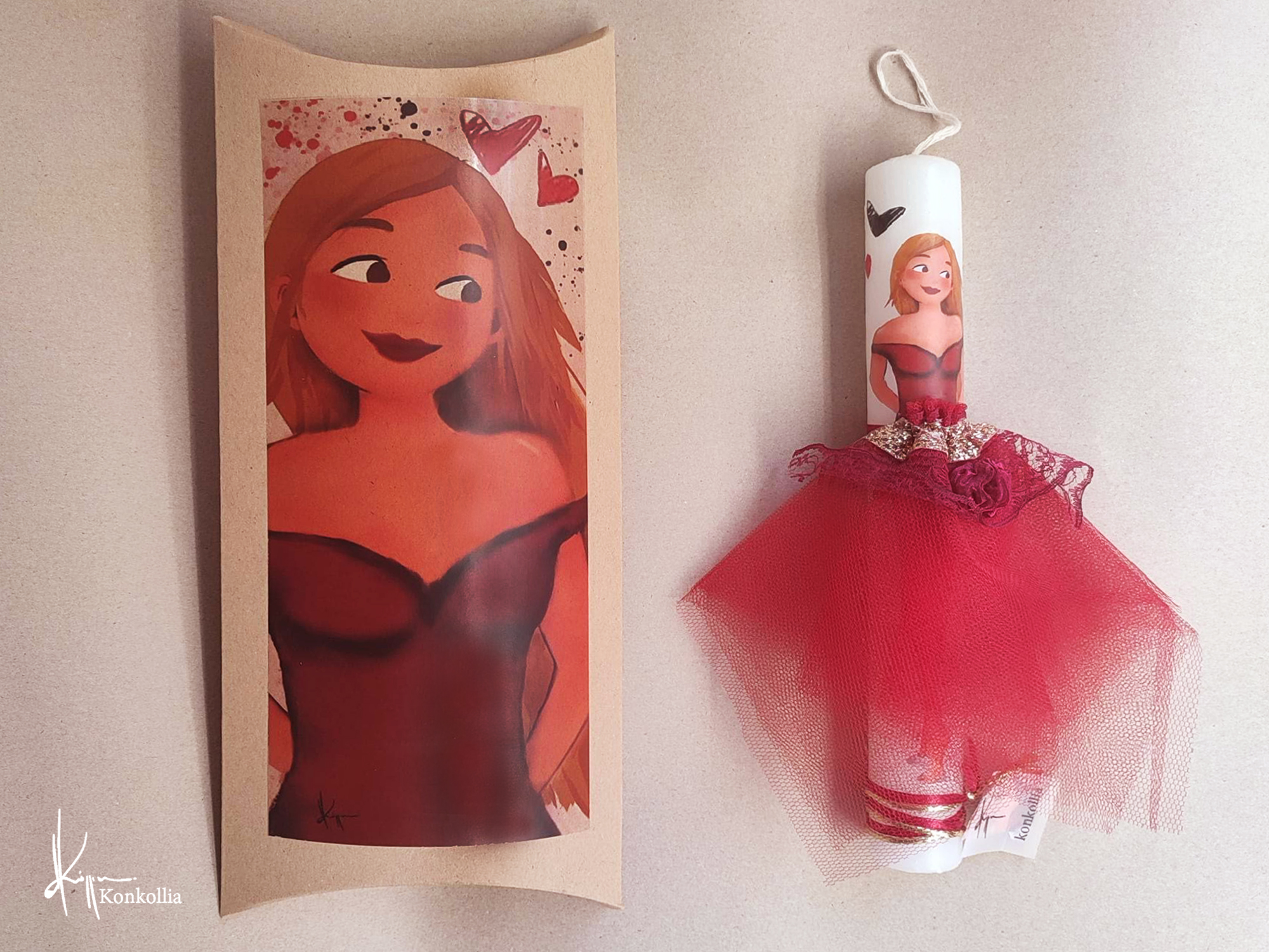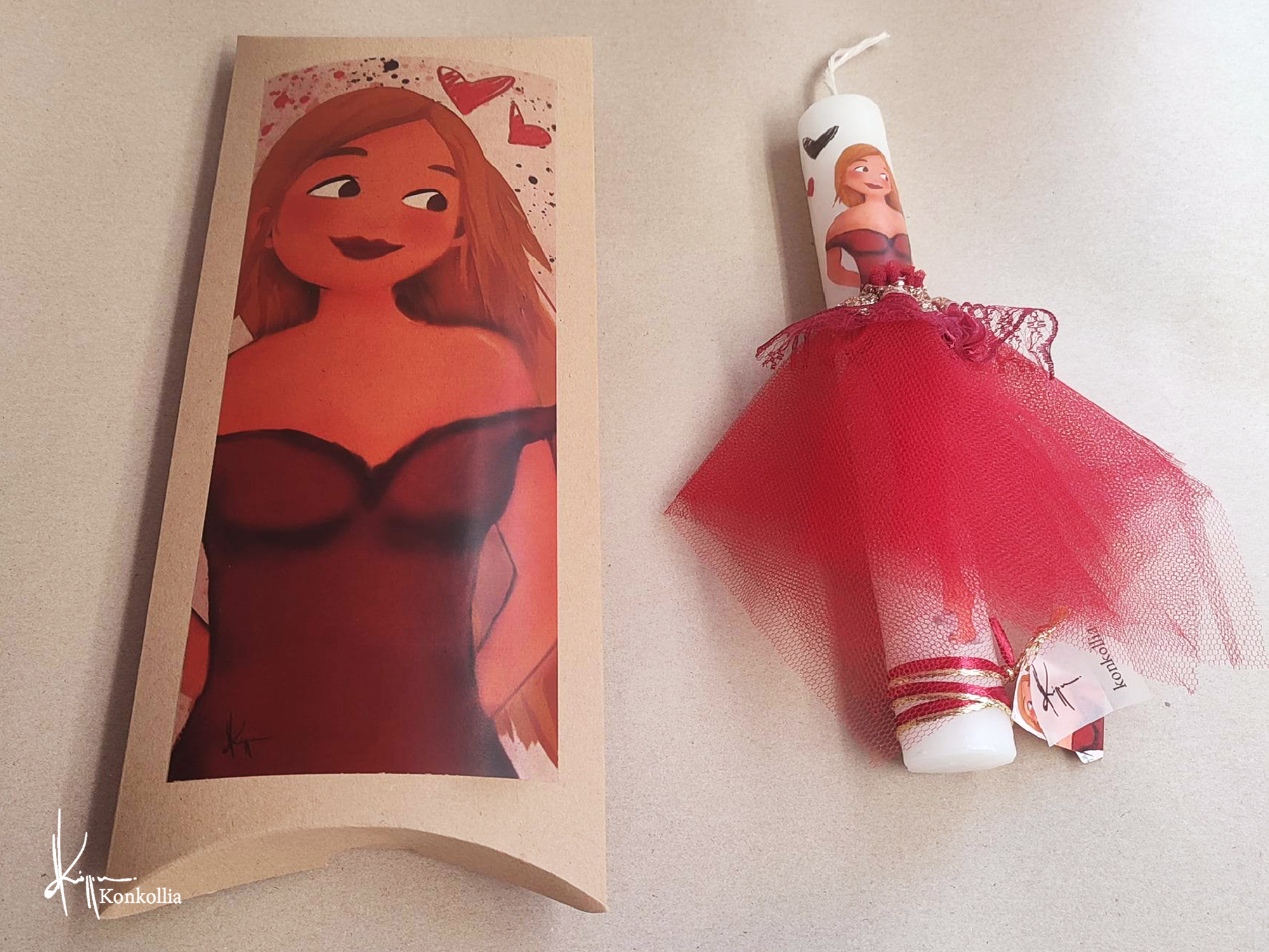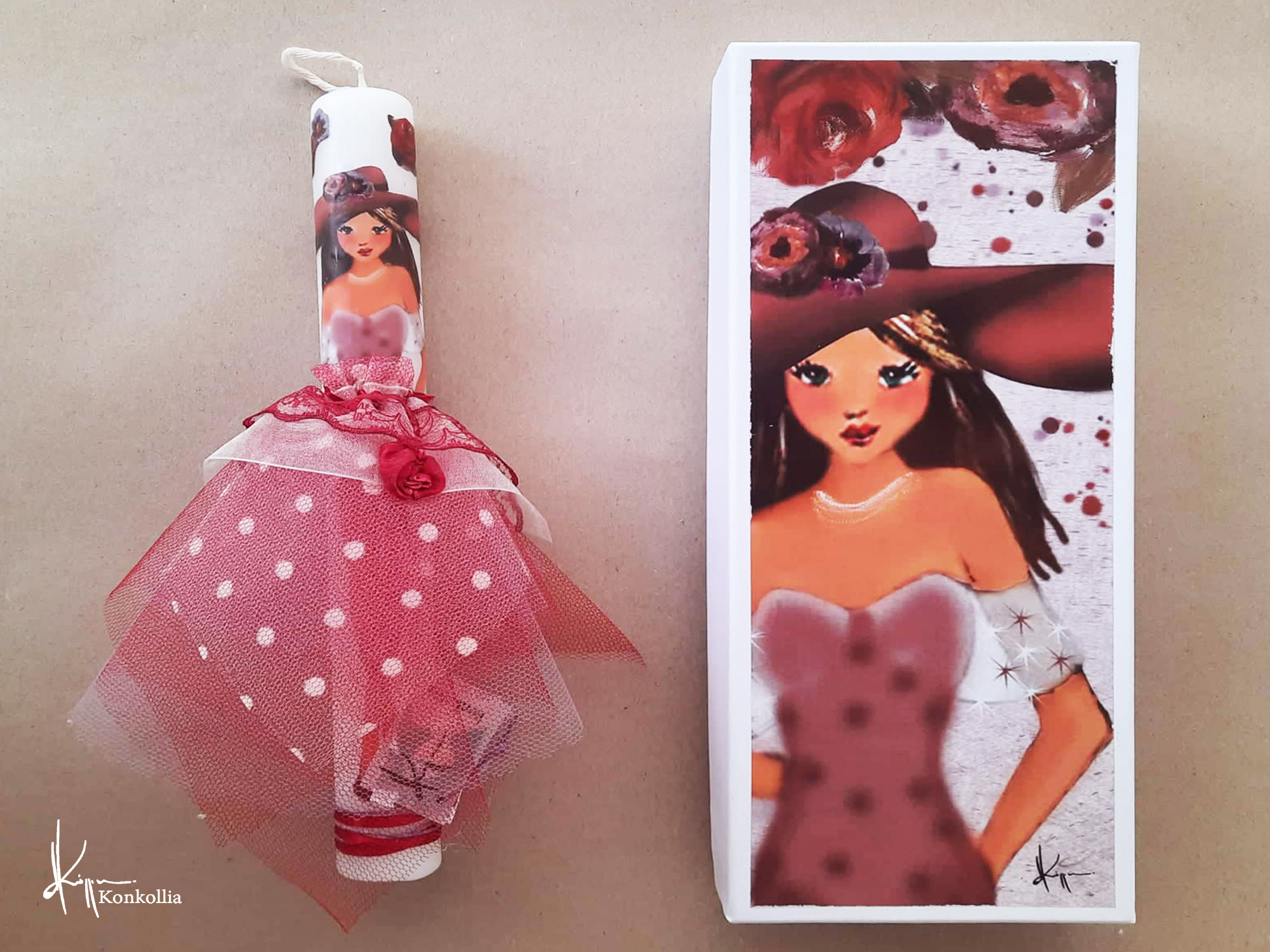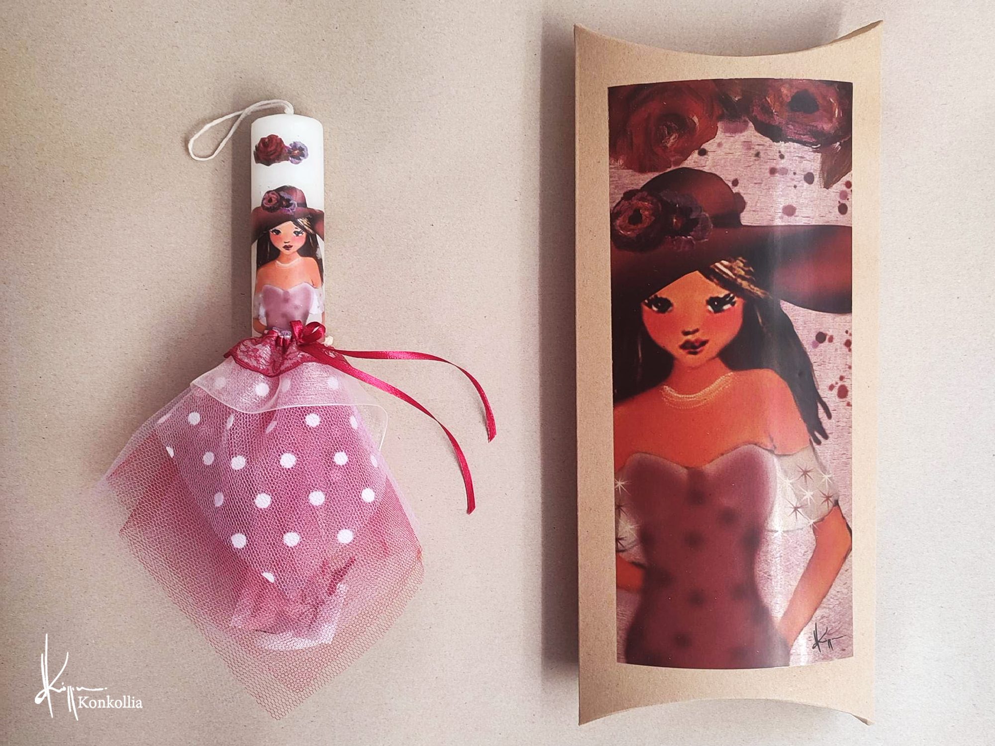 Κουτί λαμπάδας με εγκοπή στο πάνω μέρος στο οποίο απεικονίζεται μία λεπτομέρεια από το θέμα κάθε λαμπάδας.