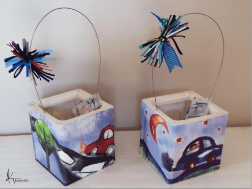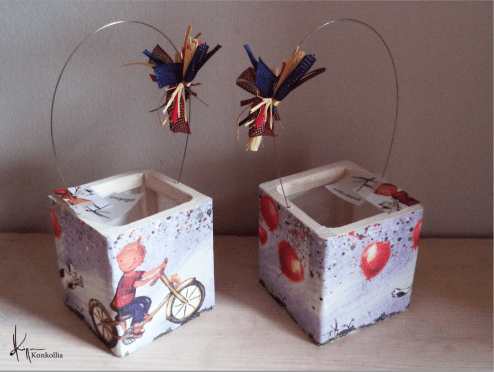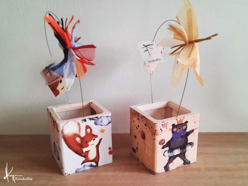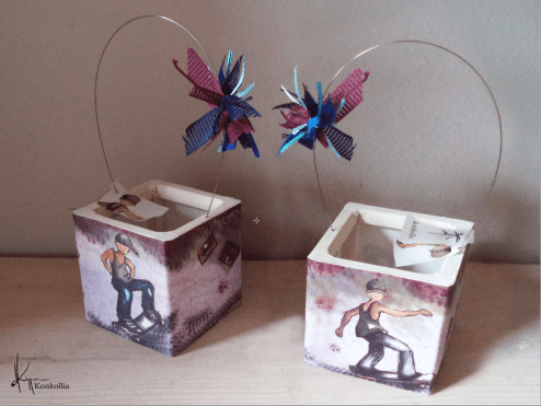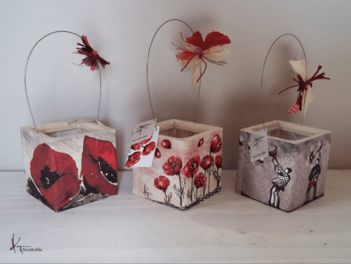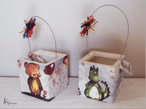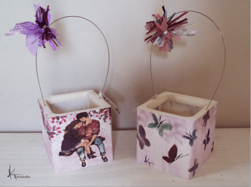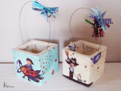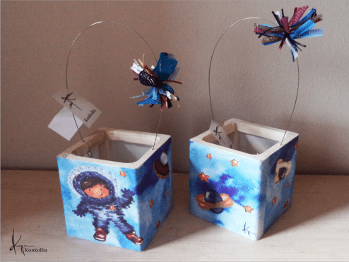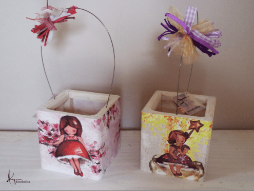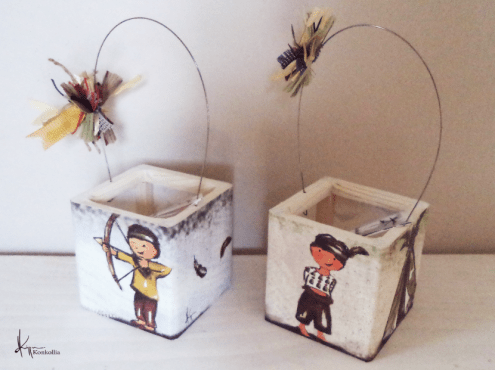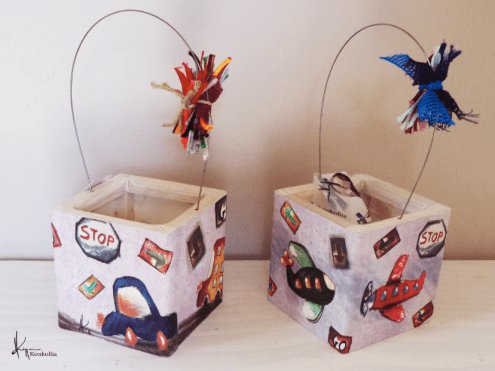 Τα χειροποίητα φαναράκια συνδυάζουν την ζωγραφική σε ύφασμα, με το ξύλο.